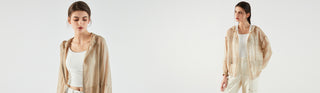 Experience a refined harmony of natural fibers, where wool’s breathable warmth meets silk’s smooth, luminous touch.
