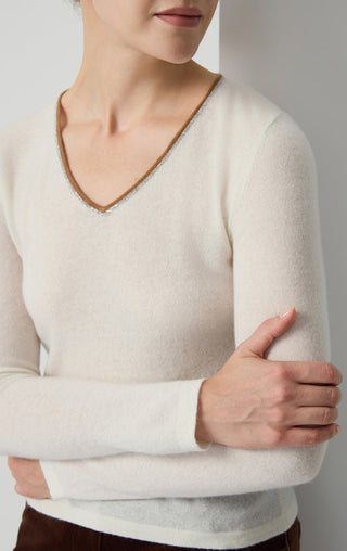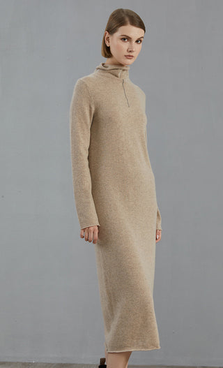 High-Neck Cashmere Dress with Layered Shimmer Neckline