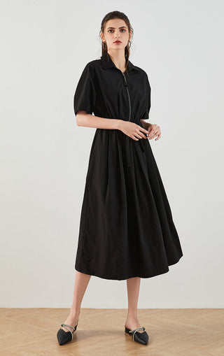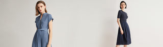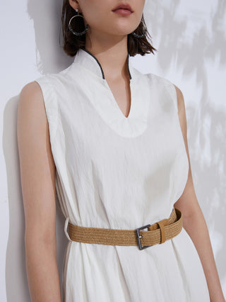 High-Neck Cashmere Dress with Layered Shimmer Neckline