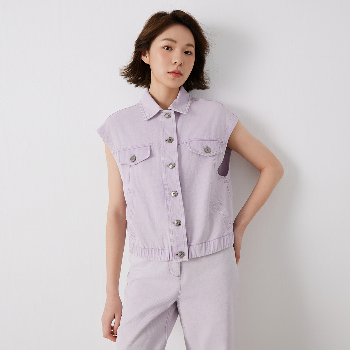 This denim vest is made from breathable cotton for a structured yet comfortable fit. Featuring a classic sleeveless silhouette and clean lines, it’s ideal for layering over tees or dresses. The natural cotton texture adds a casual, easy-going feel — perfect for spring and summer outings.