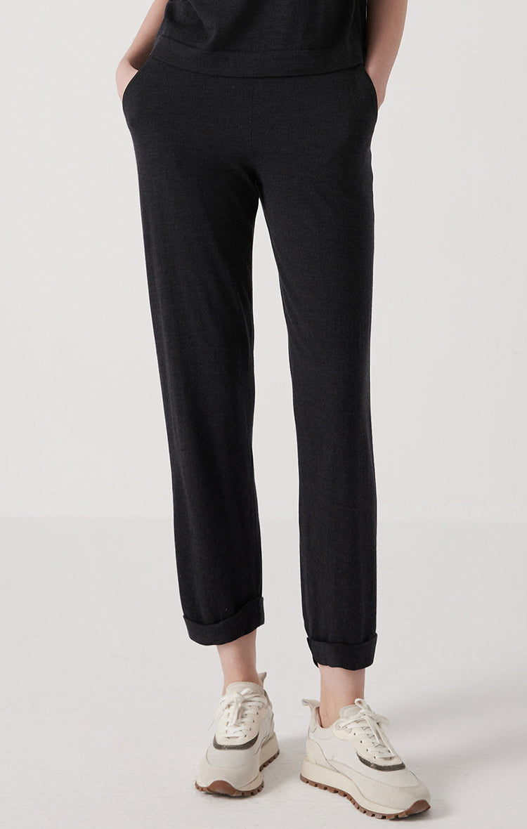 This pants are made from a blend of 70% wool and 30% silk, combining the structure of wool with the softness and sheen of silk. Designed with a slim fit and subtly rolled cuffs, they offer a clean and refined silhouette. Suitable for everyday wear or light business styling, these pants deliver comfort with a polished touch.