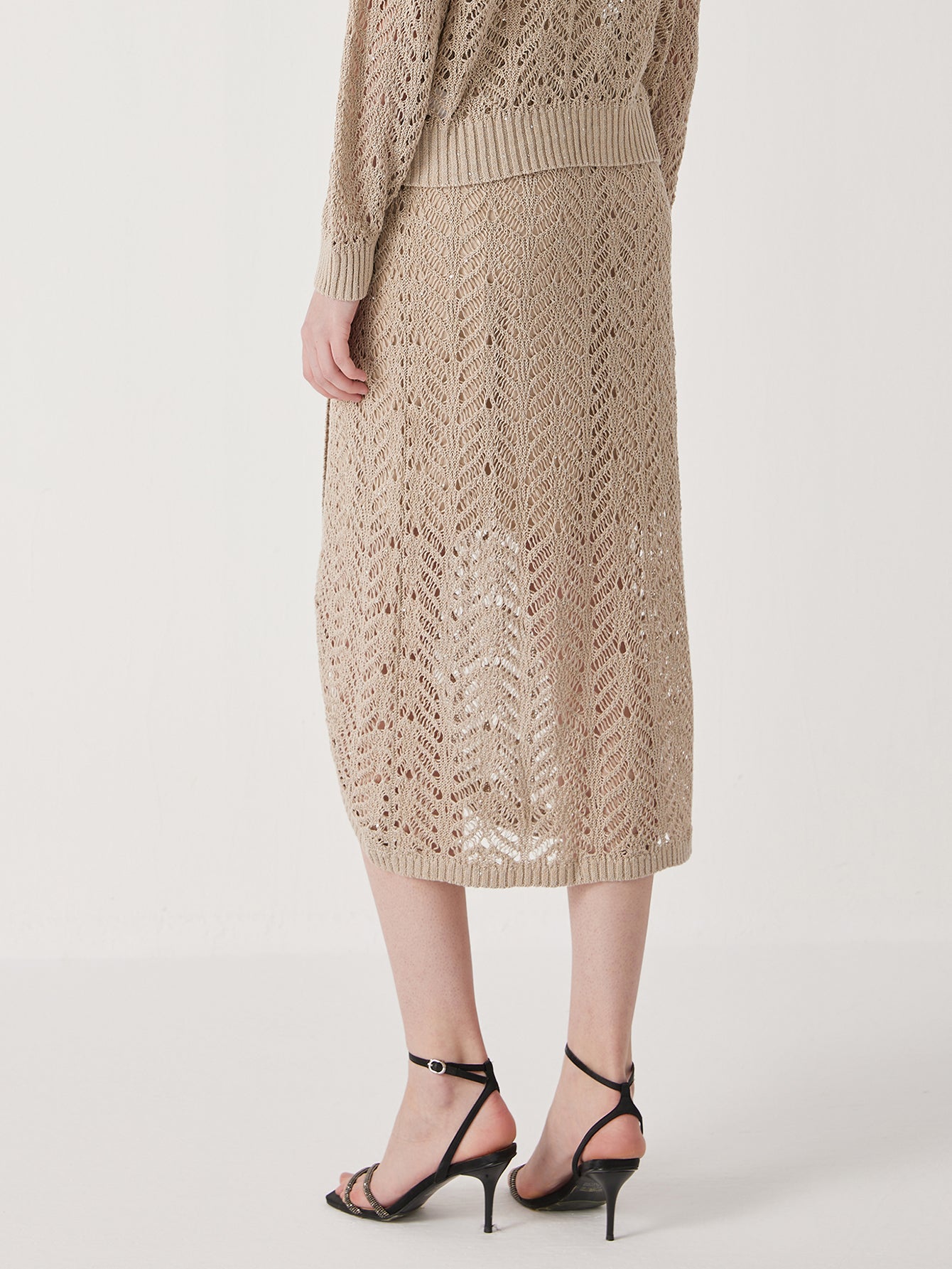 This lightweight skirt is made from premium linen with a half-bleached finish, creating a soft contrast between sheer and natural textures. The translucent effect offers a modern layered look, while the breathable fabric ensures comfort in warm weather.