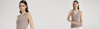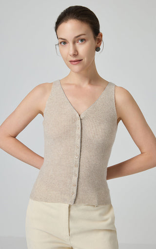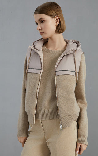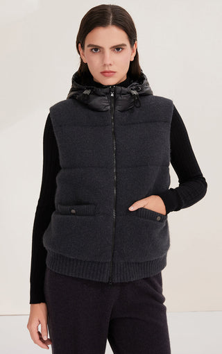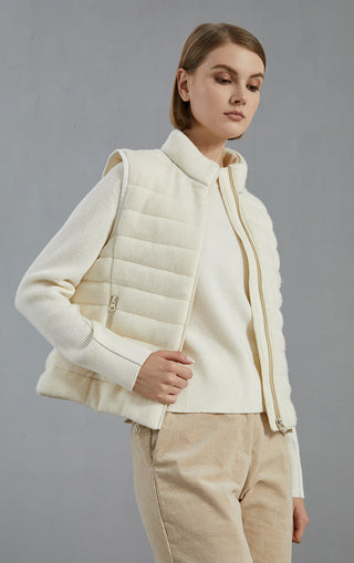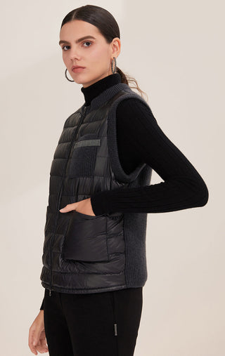 Cashmere Down Women's Knit-Trim Sleeveless Puffer Vest