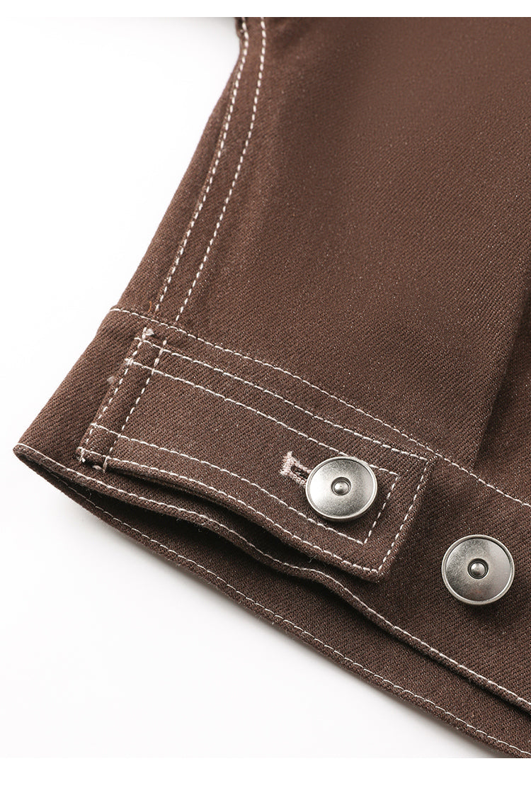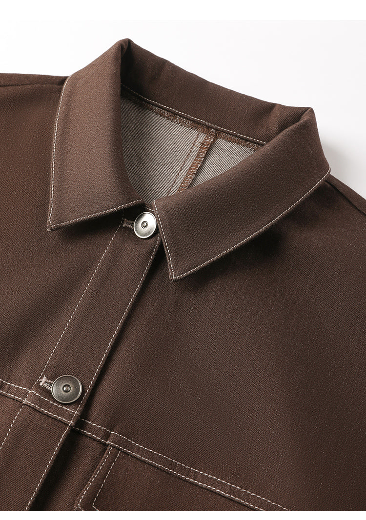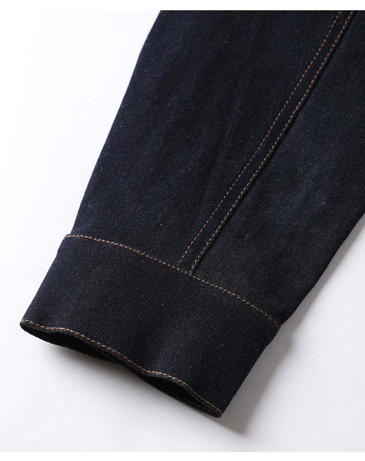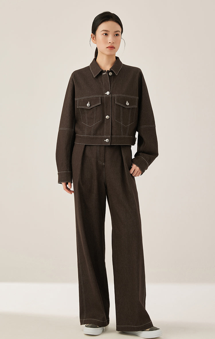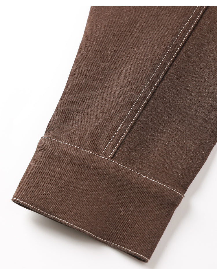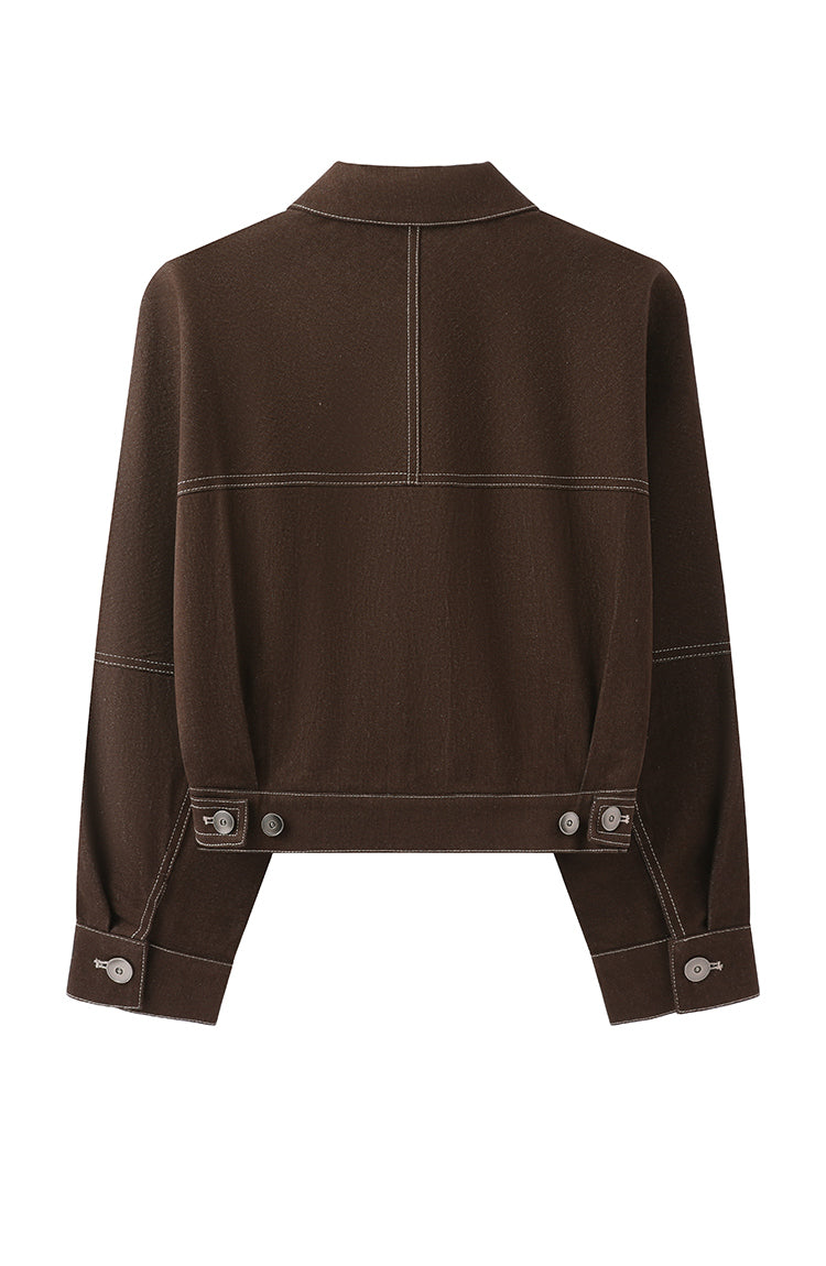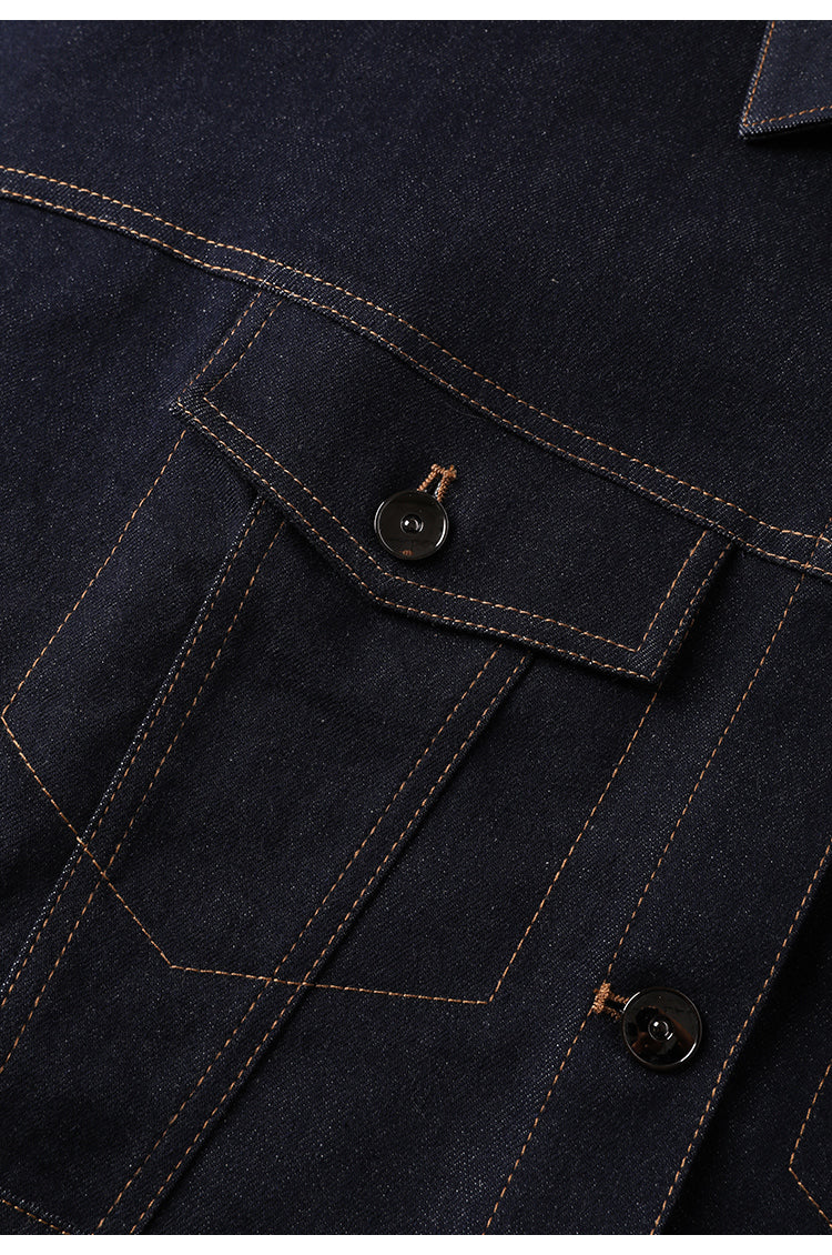 This cropped denim jacket features bold contrast stitching and a structured silhouette for a refined casual look. Crafted with a cotton-blend shell and fully lined with breathable 100% cotton, it offers all-day comfort with a touch of stretch. The buttoned chest pockets and tailored seams enhance its utility-inspired elegance