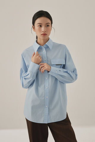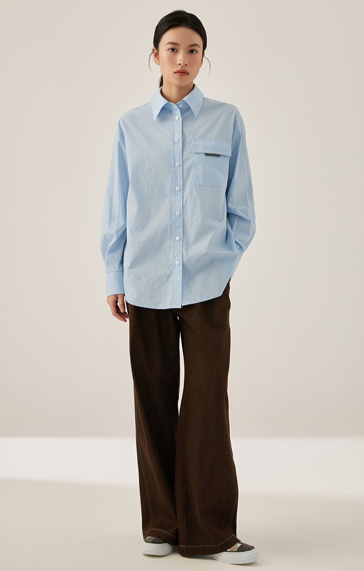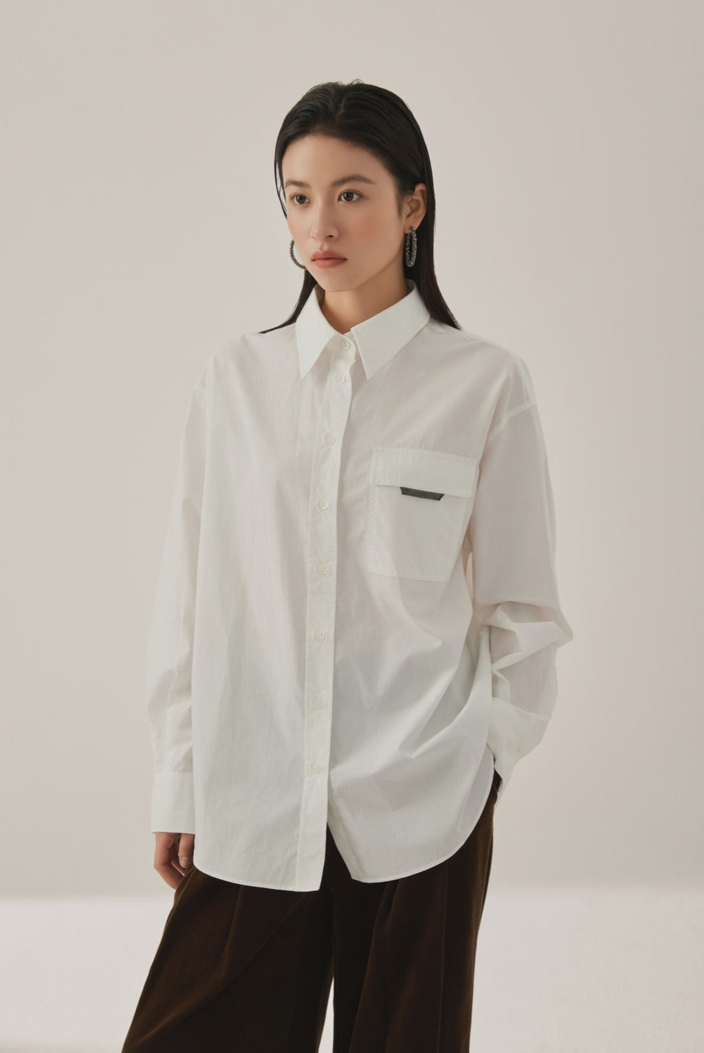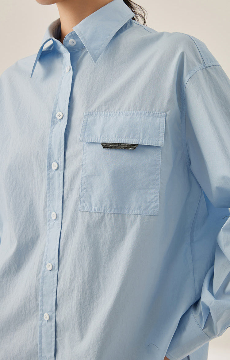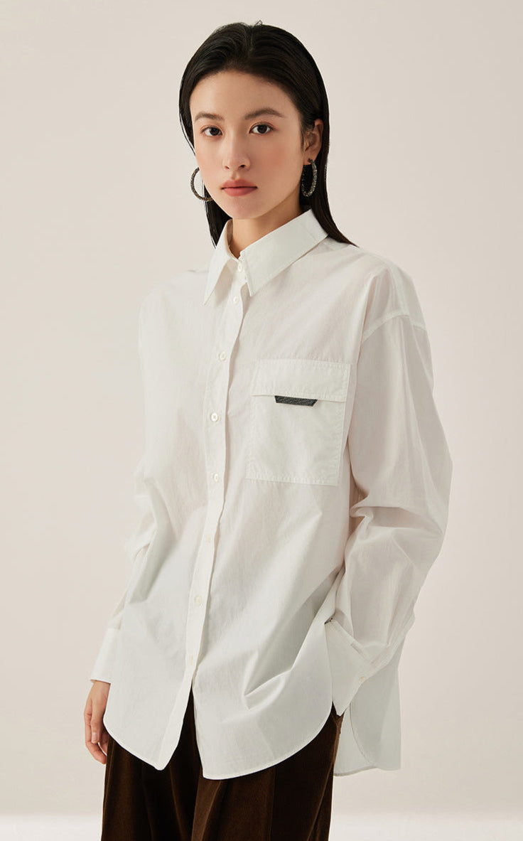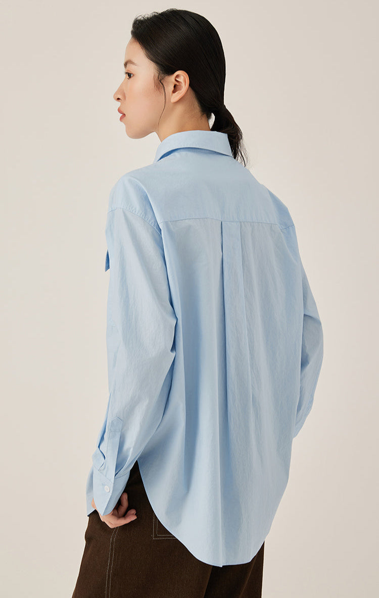 Cut from crisp 100% cotton, this oversized utility shirt reimagines a timeless staple with a modern, relaxed edge. The dropped shoulders and generous fit enhance comfort, while a structured chest pocket adds a touch of functional detail. Perfect for layering or standalone styling, it moves effortlessly between seasons and settings.