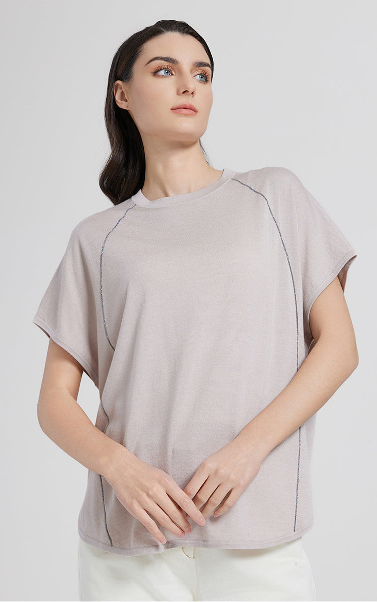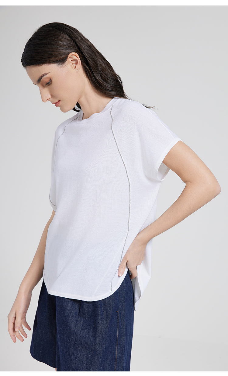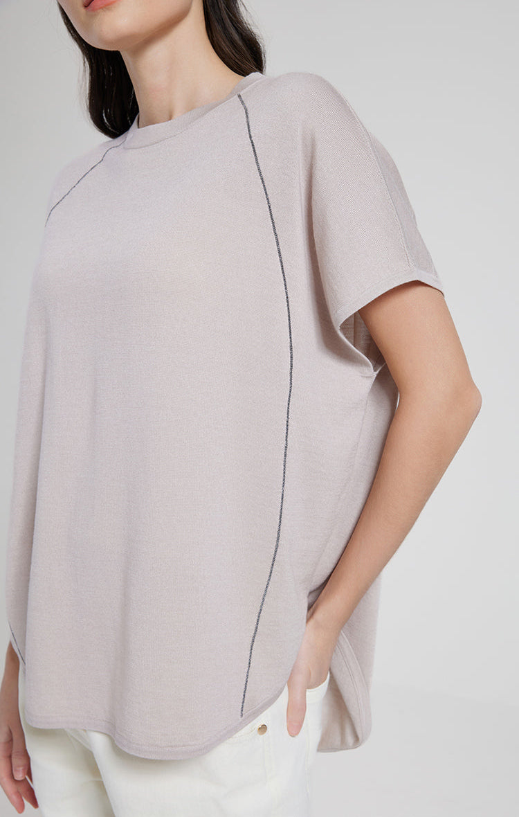 wool silk blend line short sleeve top
