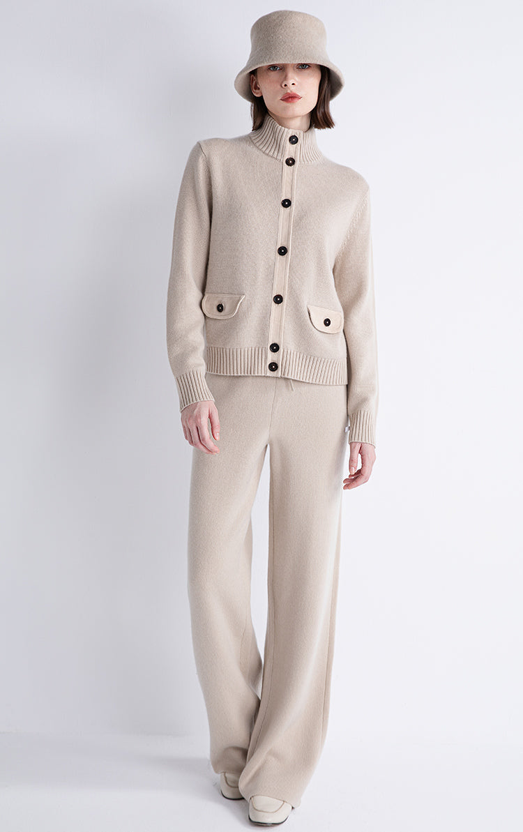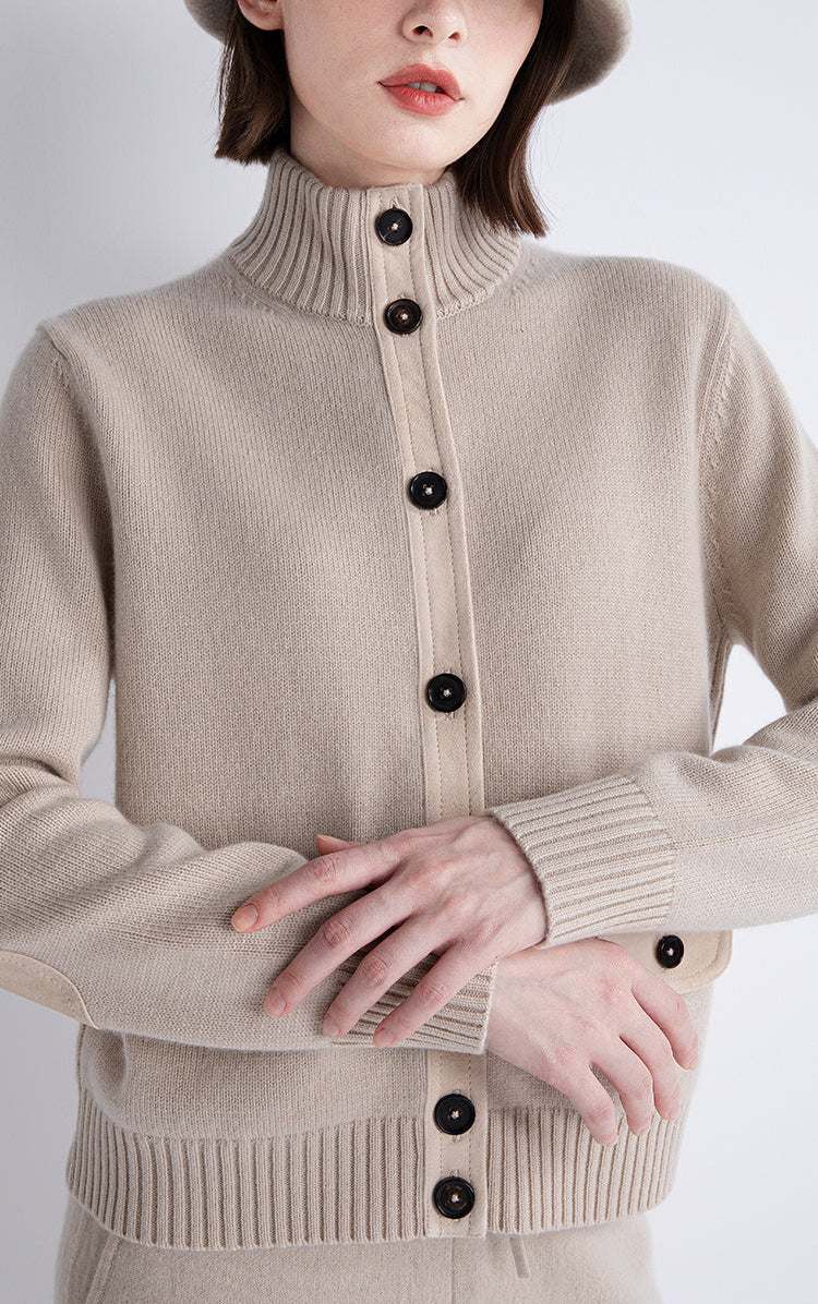 Wool and Cashmere High-Neck Button Cardigan