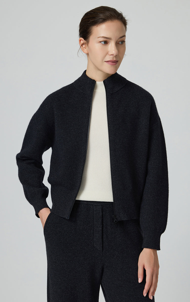 Wool and Cashmere Zip-Up Knit Jacket