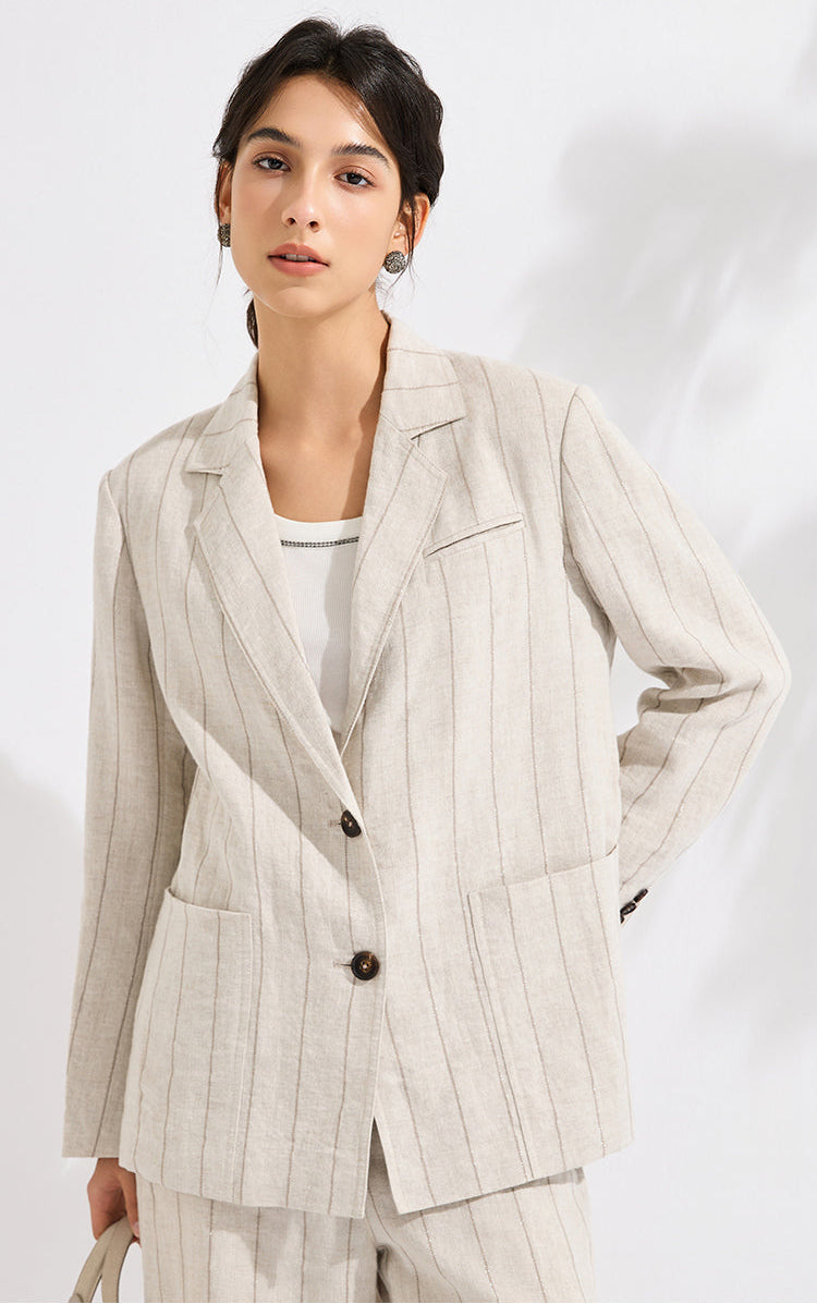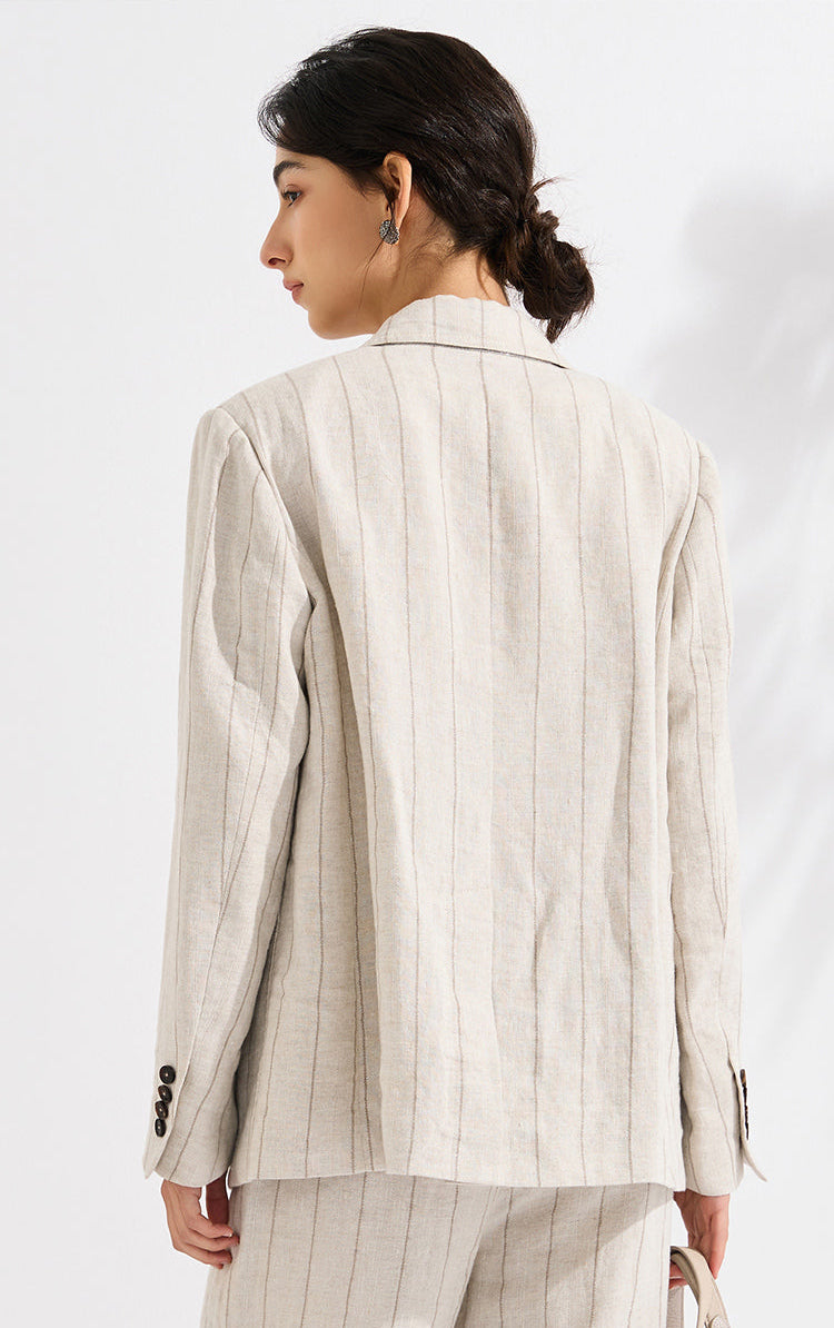 Ramie Blend Relaxed-Fit Striped Blazer